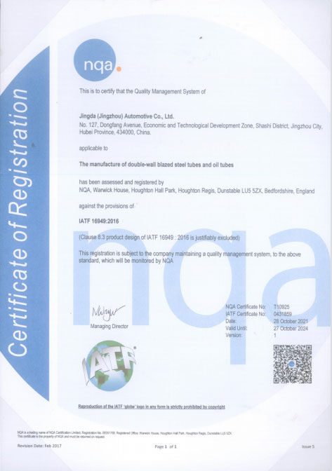 Certified R & D Center of Environment Friendly Automotive Tubing